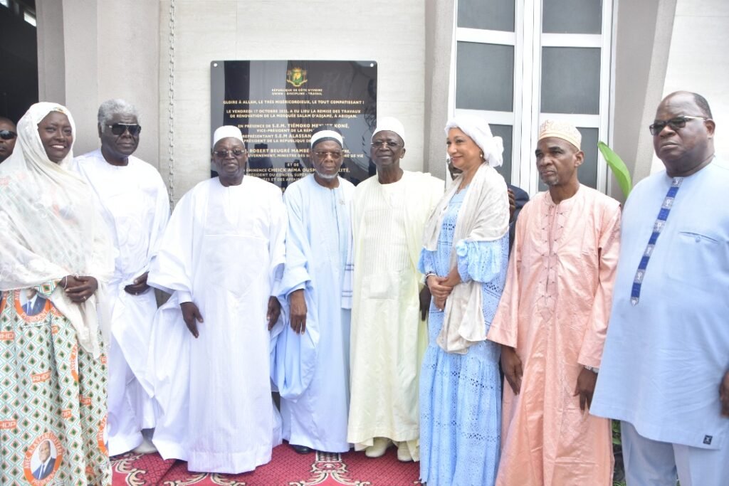 La grande mosquée Salam d’Adjamé brille désormais de tout son éclat. Après plusieurs mois de travaux de rénovation, ce joyau architectural a été officiellement inauguré ce vendredi 17 octobre 2025 par le Vice-Président de la République, Koné Tiémoko Meylet, en présence de nombreuses personnalités religieuses, politiques et administratives.